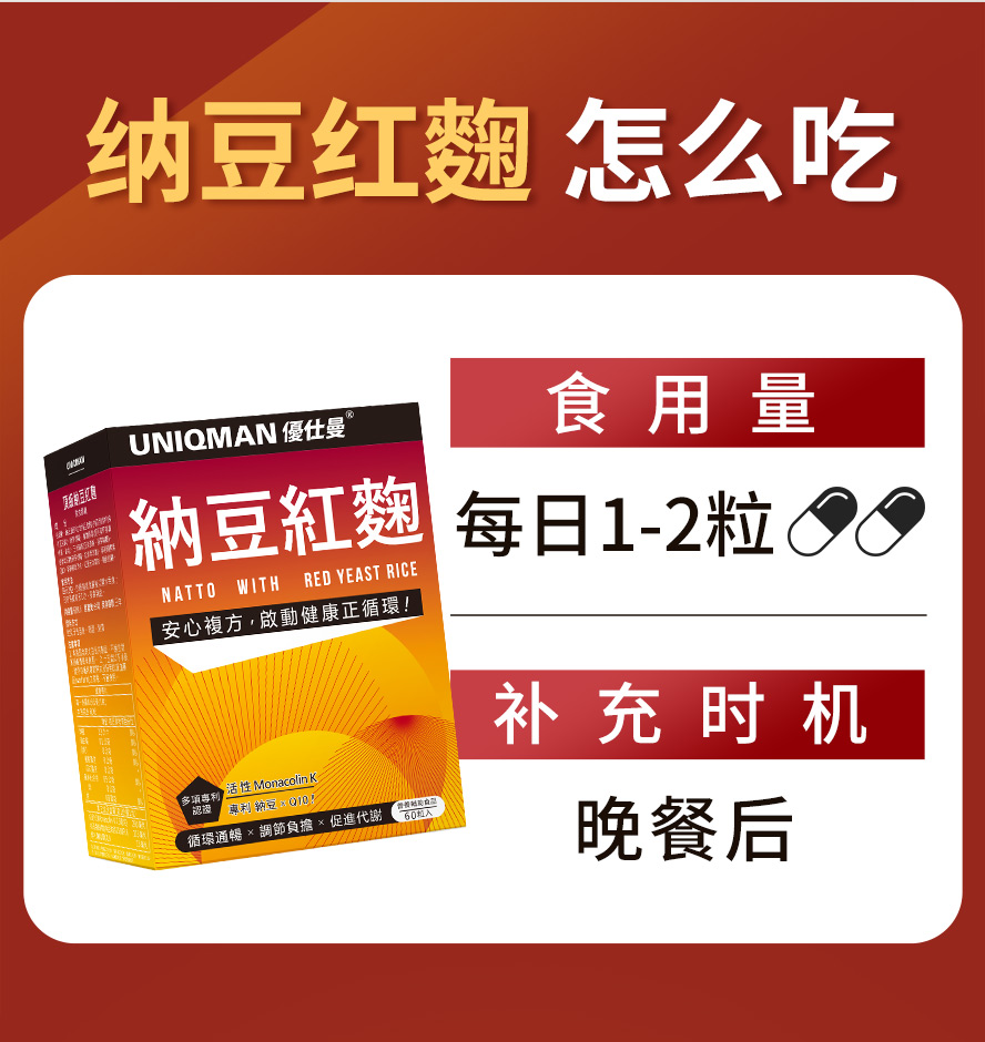 【代谢优化】含70%以上高活性开环型红麴,每份含15mg Monacolin K,有效改善心血管问题,血管顺畅流通,健康又安心。