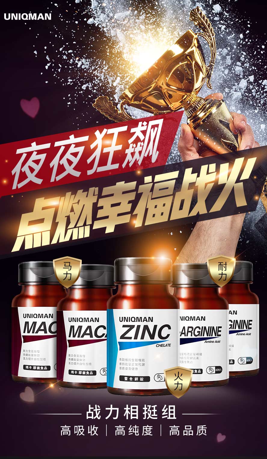 UNIQMAN 战力相挺组 玛卡(60粒/瓶)2瓶组+螯合锌(60粒/瓶)+精胺酸(60粒/瓶)2瓶组